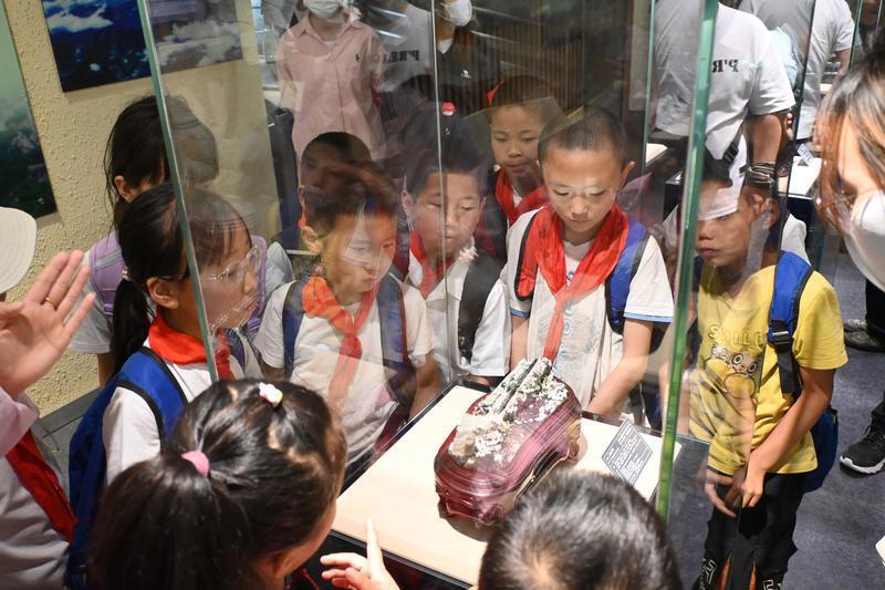 上午9:30,在志愿者的引導(dǎo)與陪伴下,土橋小學(xué)的師生們乘車抵達(dá)終南山世界地質(zhì)公園博物館,志愿者與景區(qū)專業(yè)講解員配合,借助科普視頻、豐富礦物標(biāo)本和趣味問答等形式,生動(dòng)講述了秦嶺山脈的壯闊形成史與獨(dú)特地質(zhì)地貌知識(shí)。孩子們沉浸在這座“行走的課堂”中,親身感受著自然科學(xué)的無窮魅力。